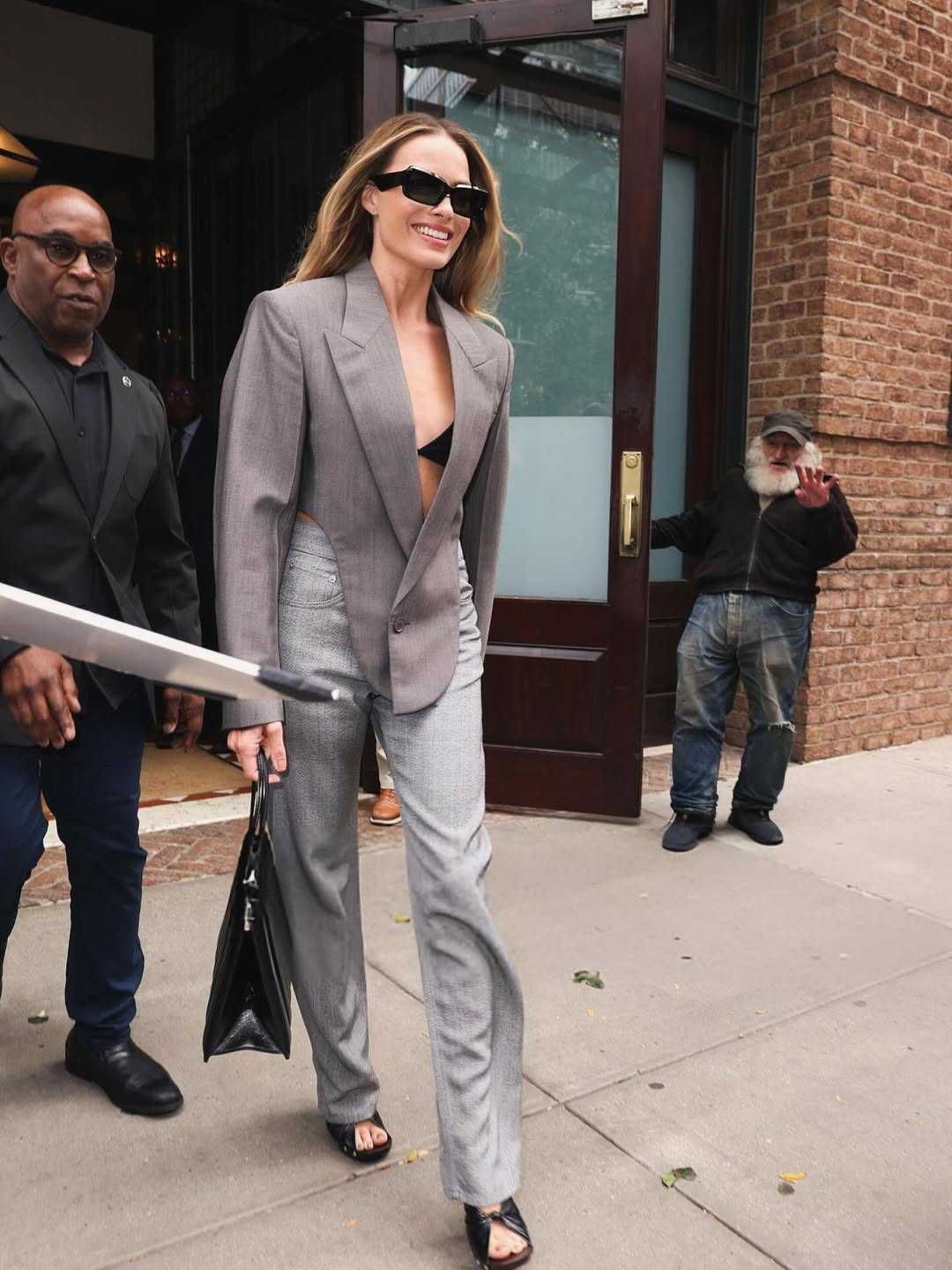 Drugi izlazak donio je potpuno drugačiju vibru, elegantni sako u tamnosivoj nijansi, ispod kojeg je provirivao crni grudnjak, uparen sa svijetlim hlačama.