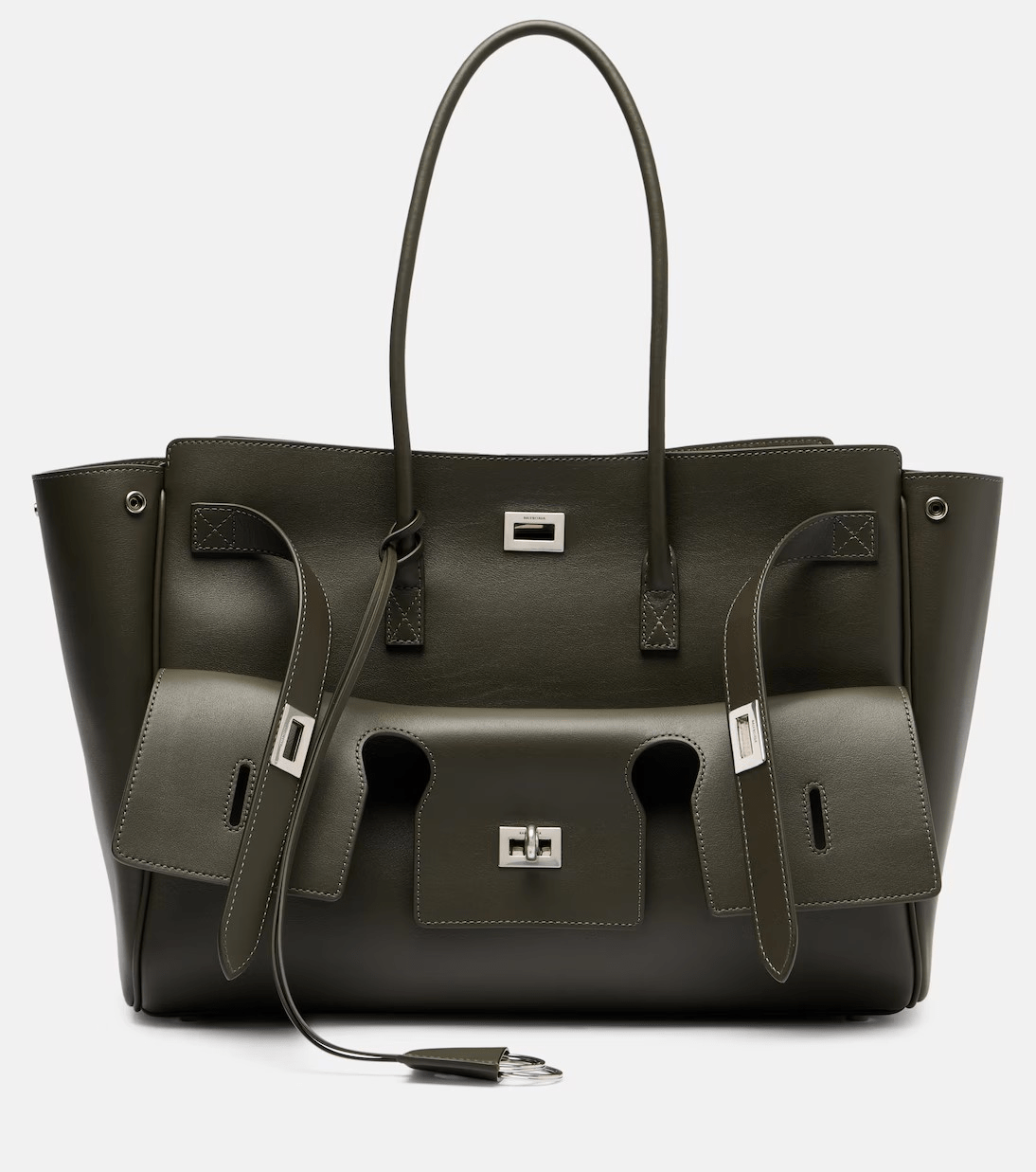 Ova torba nije samo modni dodatak, nego i statusni simbol, dizajn joj je istodobno klasičan i buntovan: strukturirane linije podsjećaju na bezvremenske tote modele, dok dramatične metalne kopče i pomalo arhitektonska silueta nose prepoznatljiv Balenciagin pečat.